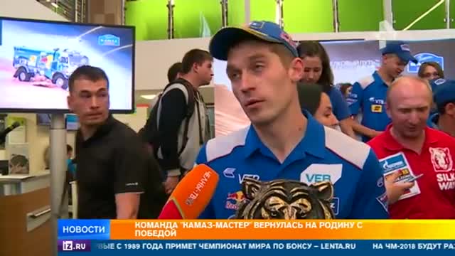 Победителей ралли "Шелковый путь" встречают на родине. Родственники и друзья членов команды "КАМАЗ-мастер" ждали своих чемпионов в аэропорту Нижнекамска. Спортсменов встречают цветами и традиционным чак-чак. Затем обязательная общая фотография. Наши пилоты и штурманы заняли весь пьедестал почета в общем зачете грузовиков. Первое место завоевал экипаж Дмитрия Сотникова.