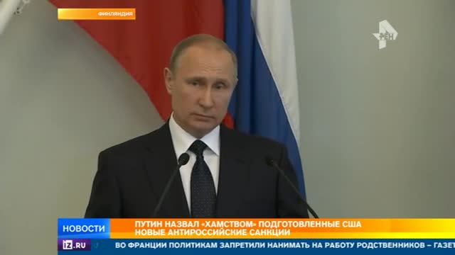 Хамство, которое невозможно терпеть. Так Владимир Путин сегодня высказался о новых антироссийских санкциях, которые подготовлены в США. Громкое заявление прозвучало в Финляндии, куда российский лидер приехал в знаковый момент. Республика готовится отмечать 100-летие обретения независимости. Именно поэтому визит Владимира Путина не ограничен только политическими и экономическими вопросами. За поездкой президента следит моя коллега Юлия Сеферинкина.