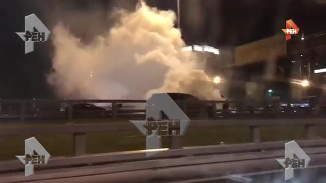 На Ленинградском проспекте произошло "огненное" столкновение авто и байкера