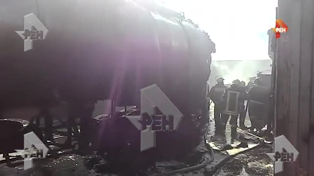 На месте ЧП работают десять пожарных расчетов. При этом спасатели не только занимаются тушением большегруза, но и стараются защитить от распространения огня на АЗС.