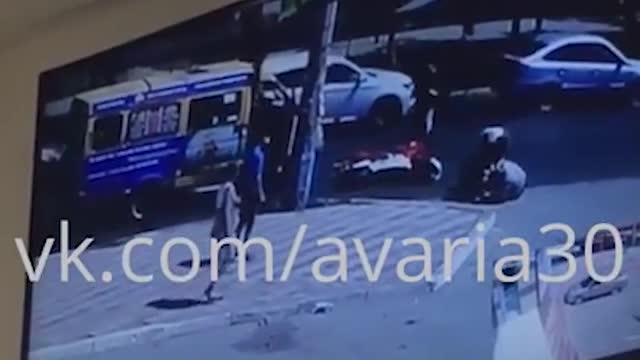Видео: мотоциклист сбил мужчину с 4-месячным сыном в Астрахани