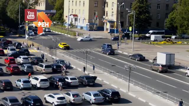 На кадрах видно, как автомобиль буквально раскидывает проходивших мимо людей. В результате аварии пострадали 7 человек, среди них есть дети.