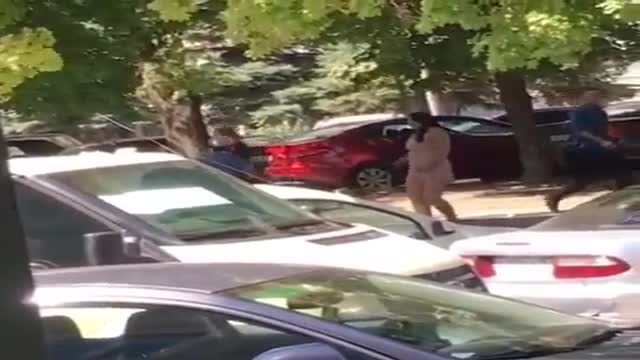 Судя по этим кадрам, девушка, услышав энергичную музыку на улице, разулась и бодро начала выполнять танцевальные движения. Все это происходило не на ярмарке или праздничном мероприятии, а рядом с припаркованными машинами.