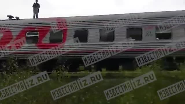 РЕН ТВ публикует видео с полностью разрушенным после столкновения с грузовиком вагоном поезда в ХМАО