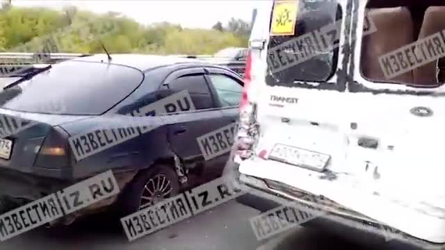 Сообщается, что ДТП произошло с участием микроавтобуса "Форд-Транзит", грузовика МАЗ и легкового автомобиля.
