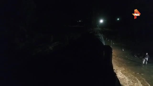 Пусковые установки ПГРК "Ярс" преодолевают брод через реку Порос глубиной около одного метра после проведения инженерной разведки и разминирования учебных мин.