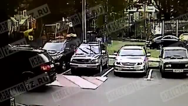 На них видно, как "джип" выезжает на парковку, но неожиданно там появляется ребенок, на которого в итоге наезжает автомобиль. Также на кадрах видно, что водитель выходит из машины и идет к ребенку.