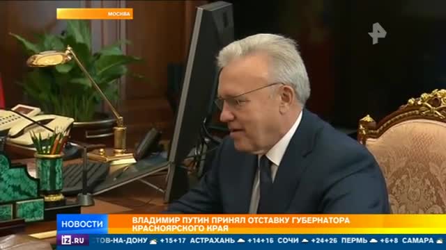 Ранее на сайте Кремля появилось сообщение о том, что президент РФ уже провел рабочую встречу с Уссом. Он проинформировал о решении назначить его временно исполняющим обязанности губернатора Красноярского края.