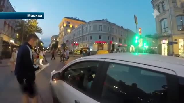 В центре Москвы водитель пытался сбить с ног активистов "СтопХам" дверью легковушки