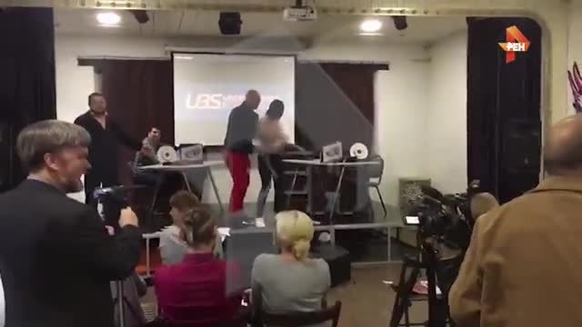 После этого феминистки закидали присутствовавших на мероприятии журналистов тортами и расцарапали голову ведущему.