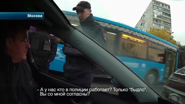Московские полицейские решили выучить закон о полиции при помощи обычных водителей. Сотрудники патрульно-постовой службы не в самой вежливой и, главное, законной форме попросили водителя выйти их машины.