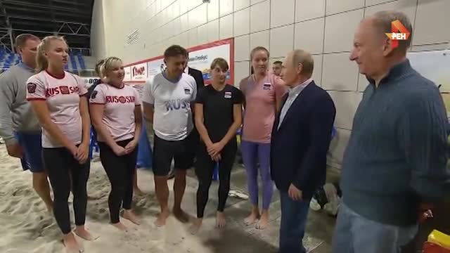 Российский президент посмотрел на тренировку сборной России по пляжному волейболу, в которой принимали участвовали, в частности, 20-летние чемпионки Европы и серебряные призеры ЧМ по пляжному волейболу. После тренировки Владимир Путин немного поговорил со спортсменками и обратил внимание на то, что чемпионкам составили достойную конкуренцию их коллеги по сборной.