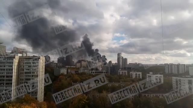 Видео: крупный пожар произошел в здании на Ленинском проспекте в Москве