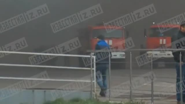 На этих кадрах можно увидеть сильное задымление и сотрудников МЧС, работающих на месте ЧП.