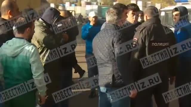 Торговцы накинулись на сотрудника полиции, который на пускал их в охваченный пожаром торговый центр "Синдика" на МКАД.