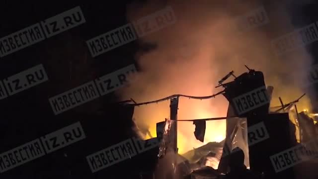По предварительным данным, огнем охвачено около 200 квадратных метров. Возгорание произошло в складском помещении, где находятся 20 бочек с отработанным маслом.