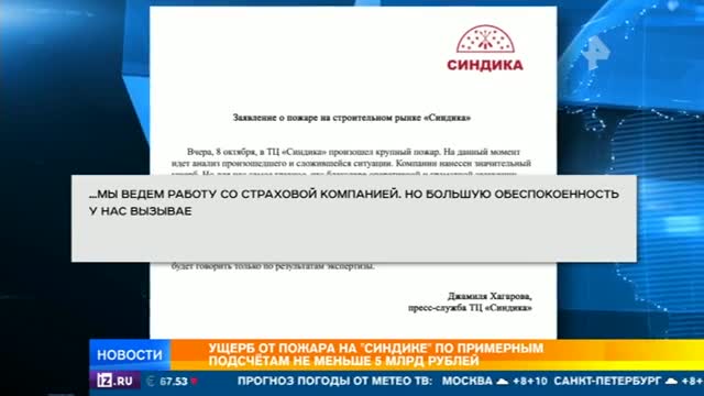 Эксперты назвали поджог основной версией возникновения пожара на рынке "Синдика"