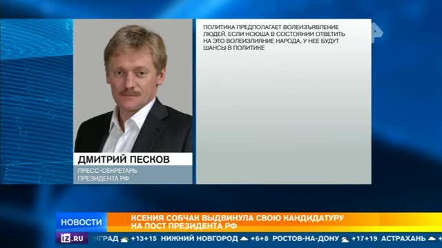У Пескова также попросили прокомментировать информацию, что Путин был недоволен, когда Собчак сообщила ему о своем решении участвовать в выборах президента.