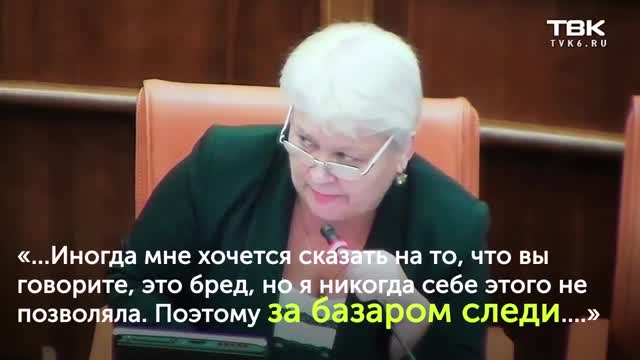 Председатель комитета по образованию, культуре и спорту Заксобрания Красноярского края Людмила Магомедова на сессии парламента ответила на замечание депутата, посоветовав ему "следить за базаром". Об этом информирует "ТВК Красноярск".