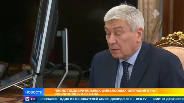Число подозрительных банковских операций в России сократилось почти в два с половиной раза. Об этом сегодня президенту доложил глава Росфинмониторинга. Юрий Чиханчин сообщил Владимиру Путину о мерах по борьбе с незаконным выводом средств за рубеж. В частности, снизить число подозрительных операций позволила система, которую Росфинмониторинг запустил вместе с Центральным банком, ведь она дает возможность видеть действия даже тех банков, у которых уже отозваны лицензии.
