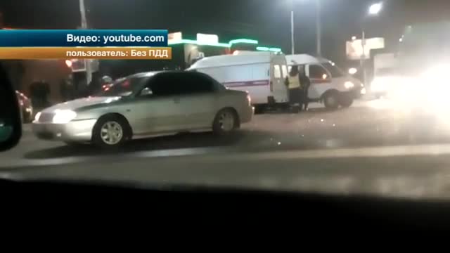 По предварительным данным, водитель микроавтобуса выехал на перекресток на желтый сигнал светофора и врезался в легковушку, после чего его отбросило на встречную полосу. Затем он столкнулся еще с одним автомобилем и опрокинулся на бок.