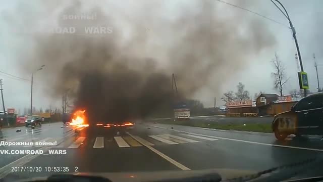 Видеорегистратор зафиксировал смертельное "огненное" ДТП в Подмосковье