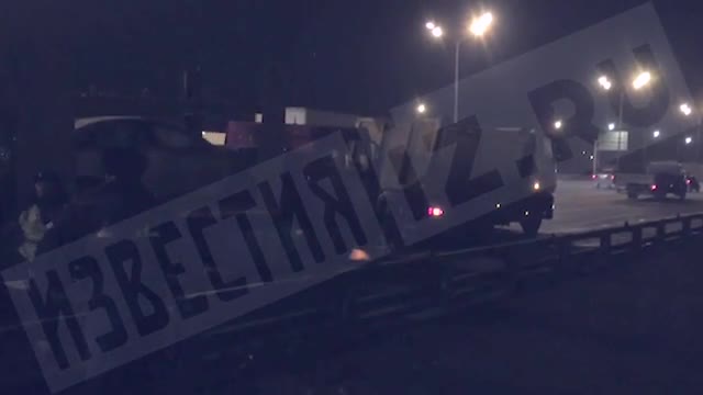 РЕН ТВ публикует видео с места аварии с тремя грузовиками на МКАД.