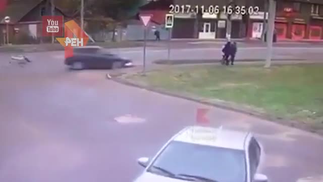 Камеры наблюдения сняли наезд легкового автомобиля на семью в Краснодаре.