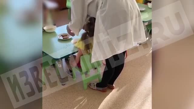 На кадрах видно, как женщина пытается накормить отказывающуюся есть девочку, буквально проталкивая ей в рот еду.