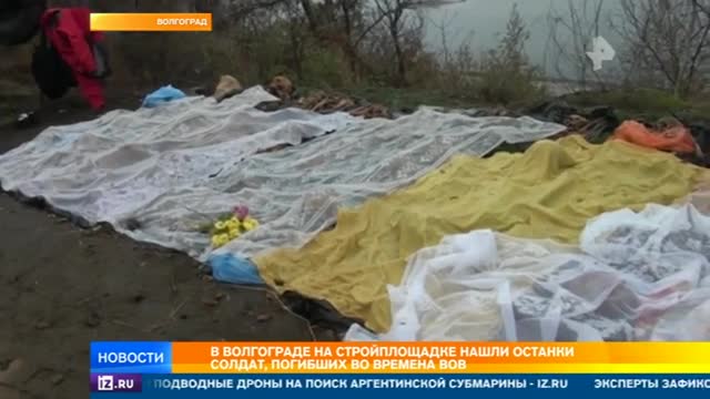 В Волгограде в эти дни вспоминают всех павших защитников города. Но буквально в канун памятной даты на стройплощадке рокадной дороги были обнаружены останки советских солдат. Хотя по справке 60-х годов, которая есть в администрации, братскую могилу оттуда давно перенесли.