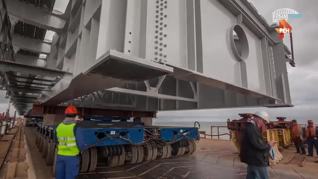 Напомним, всего между косой и островом на 21 морской опоре установлено 44 пролетных строения. Вес каждой конструкции составляет более 150 тонн.