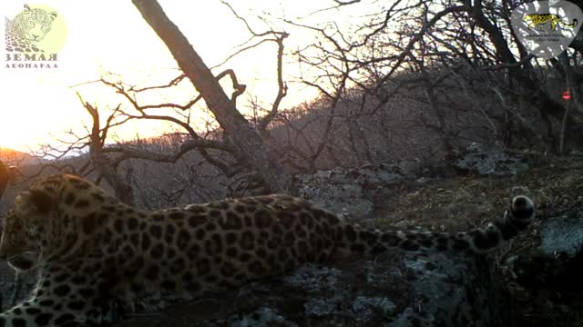 "Дальневосточный леопард Leo 12M по имени Тайфун — хозяин этой территории. Добравшись до излюбленного места отдыха, пребывающий в расслабленном состоянии хищник обозначил свое присутствие мощным ревом. Тишину заповедной тайги нарушил резкий звук — сигнал для всех лесных обитателей", — сказано в сообщении.