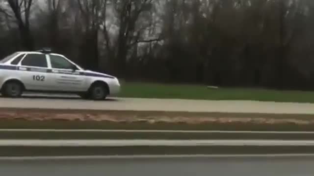 Пока все стояли в пробках, полицейский автомобиль мчался по тротуару.
