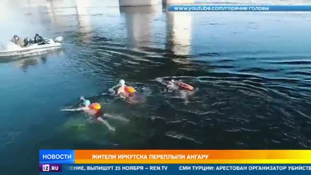 В Иркутске в минусовую температуру экстремалы решили переплыть Ангару. Это одна из самых суровых российских рек.