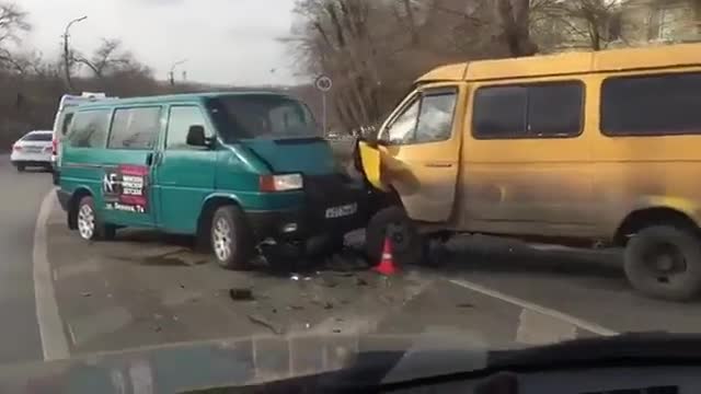 На кадрах видеозаписи видно, что в результате лобового удара кабины микроавтобусов "Газель" и "Фольксваген" превратились в буквальном смысле в груду искореженного металла.