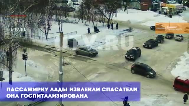 В результате ДТП оказалась зажатой пассажирка автомобиля "Лада", который первым принял мощный удар.