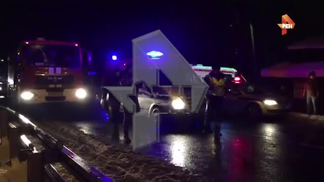 Видео с места массового ДТП на Внуковском шоссе, где погибло 3 человека
