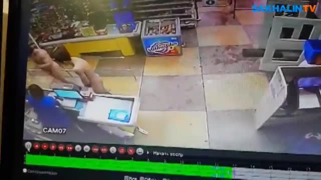 Инцидент произошел в городе Невеле. На кадрах, сделанных камерой видеонаблюдения, видно, как в один из супермаркетов города заходят, держась за руки, двое молодых людей. На них полностью отсутствует одежда, причинное место потенциальные покупатели целомудренно прикрывают ладошками.