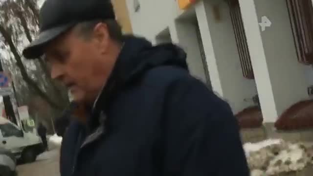 Черная машина общественников мозолит банкирам глаза. Видимо, время для контратаки — засланный "казачок" в кожаной кепке отбирает камеру активистов и сбегает.
