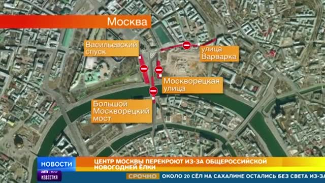 Как сообщает ЦОДД, в центральной части столицы в связи с проведением Общероссийской новогодней елки перекрыты улицы Варварка, Москворецкая, а также Большой Москворецкий мост и площадь Васильевский спуск.