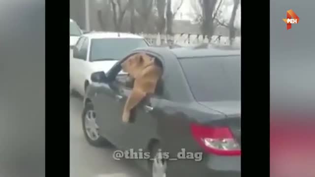 На этих кадрах можно увидеть, как лев попытался сбежать через открытое окно. Животное практически выбралось из салона, когда мужчина подошел и начал вталкивать его обратно задом наперед. Он обхватил льва голыми руками.