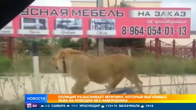 РЕН ТВ удалось отыскать хозяина льва, которого выгуливают в Махачкале