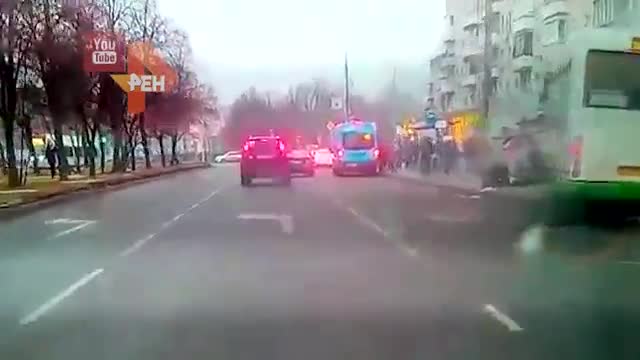 Регистратор снял момент наезда автобуса на остановку в Москве