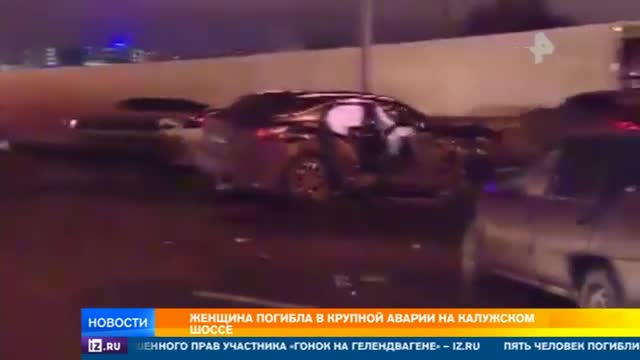 Кадры крупной аварии на Калужском шоссе в Новой Москве. На 30-м километре столкнулись сразу семь машин.