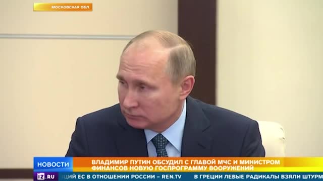 Пресс-секретарь президента России Дмитрий Песков заявил, что Владимир Путин на совещании с министром финансов Антоном Силуановым и главой МЧС Владимиром Пучковым обсудил государственную программу вооружений в части, касающейся МЧС.