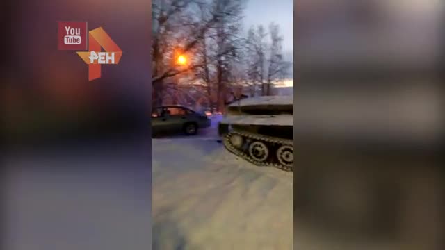 Появилось видео с места, где гусеничный бронетранспортер протаранил витрину магазина. Инцидент произошел накануне в Апатитах.