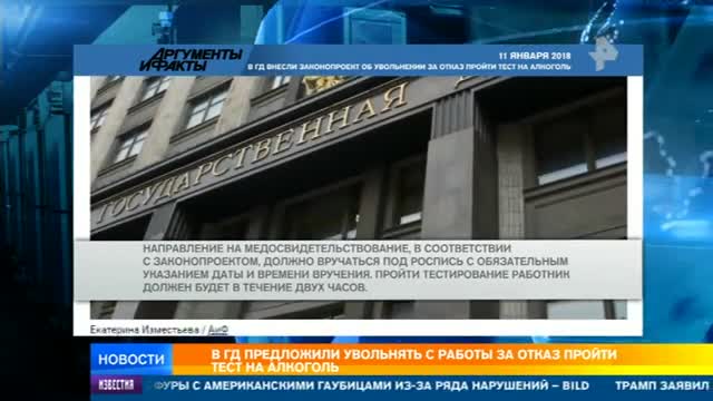 В ГД предложили увольнять с работы за отказ пройти тест на алкоголь