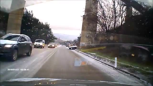 Жители Крыма выкладывают в Сеть видео и фотографии ДТП, произошедших на полуострове из-за возникшего гололеда. На камеры смартфонов попадают и длинные пробки, также образовавшиеся из-за осложненных метеоусловий.