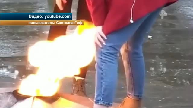 Они пляшут на мемориальной плите. В месте памяти и скорби девушкам, кажется, очень весело. Одна из подруг идет еще дальше – начинает плевать в пламя. После хулиганки позируют по очереди. А все свои похождения записывают на мобильный телефон. Видимо, чтобы похвастаться перед сверстниками.