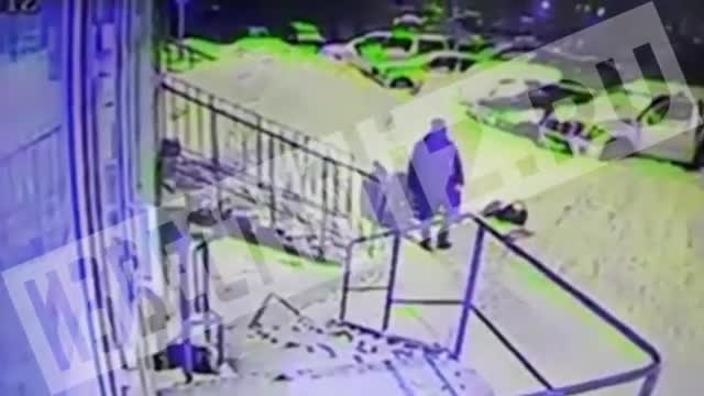 Как видно на кадрах, ребенок вместе с матерью выходит из подъезда дома, после чего на него падает сосулька. Девочку госпитализировали с травмой головы.
